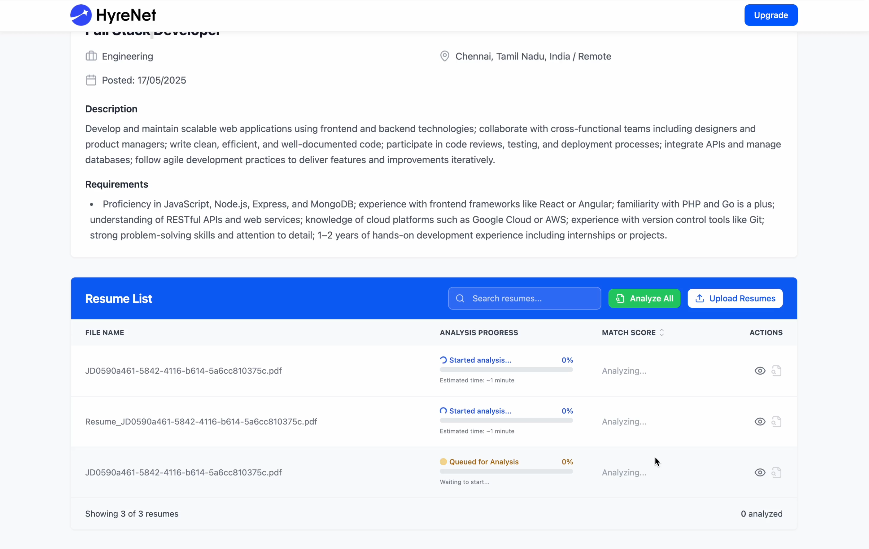 Upload Resumes