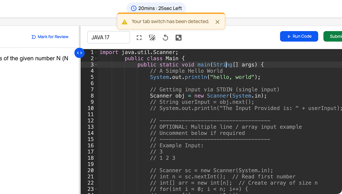 Prevents candidates from opening new tabs, accessing external websites, or using system shortcuts—creating a fully controlled testing environment.
